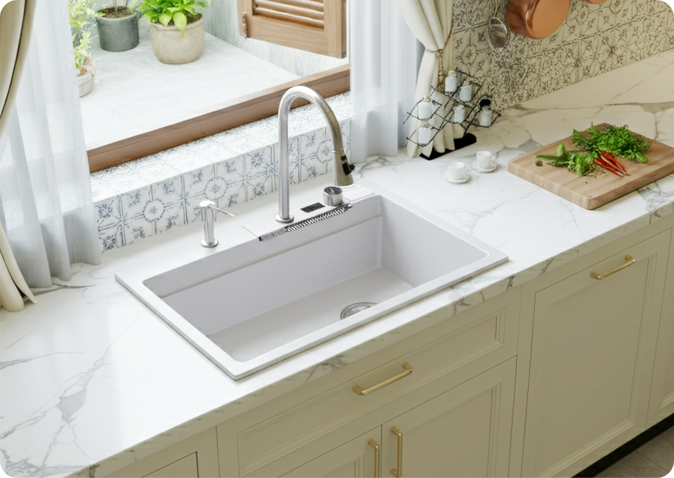 Chậu rửa không chỉ là nơi thao tác mà còn là chi tiết góp phần hoàn thiện phong cách sống của gia chủ. Chậu đá rửa chén Việt Mỹ được phát triển dựa trên triết lý “bền chắc từ cấu trúc, tinh tế từ đường nét”, đem đến trải nghiệm sử dụng vừa tiện nghi vừa sang trọng.