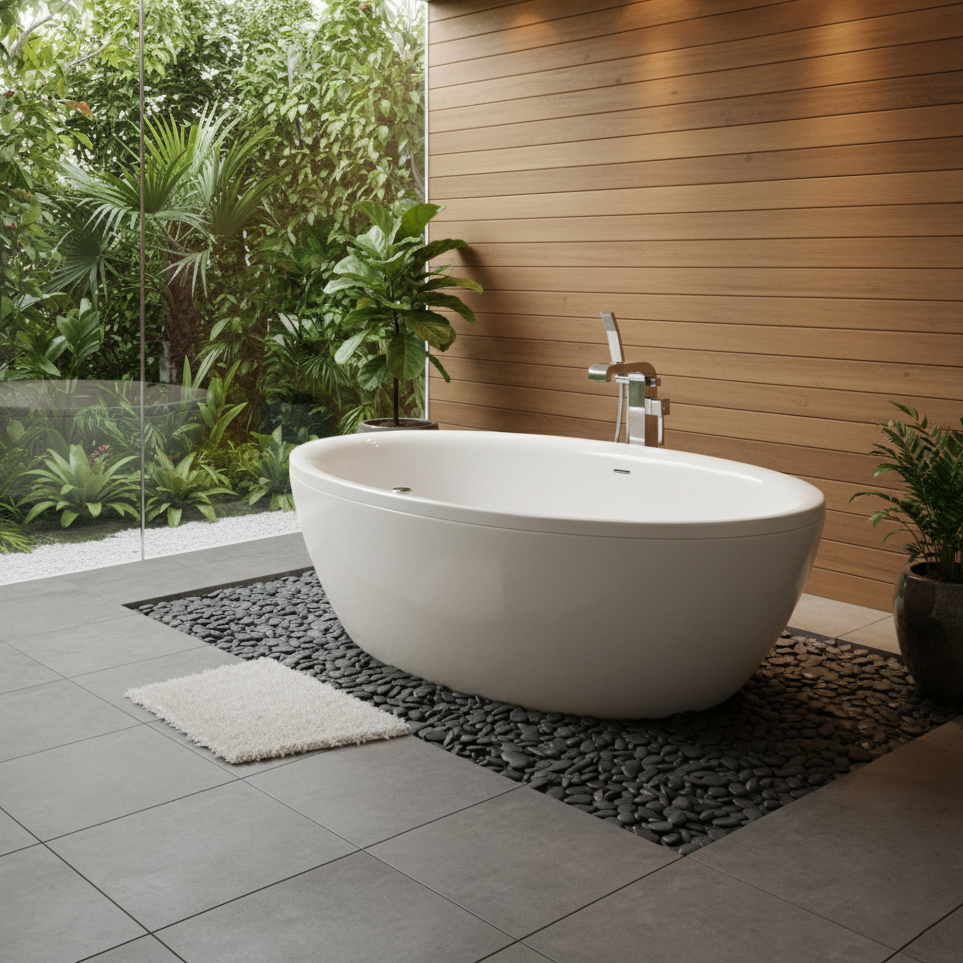 Dành cho những không gian yêu sự tự do, tinh tế và mang đậm dấu ấn thẩm mỹ. Với thiết kế liền khối không chạm tường, tạo nên điểm nhấn sang trọng ngay tại trung tâm phòng tắm, biến nơi thư giãn hằng ngày thành một trải nghiệm “spa tại gia” đẳng cấp.