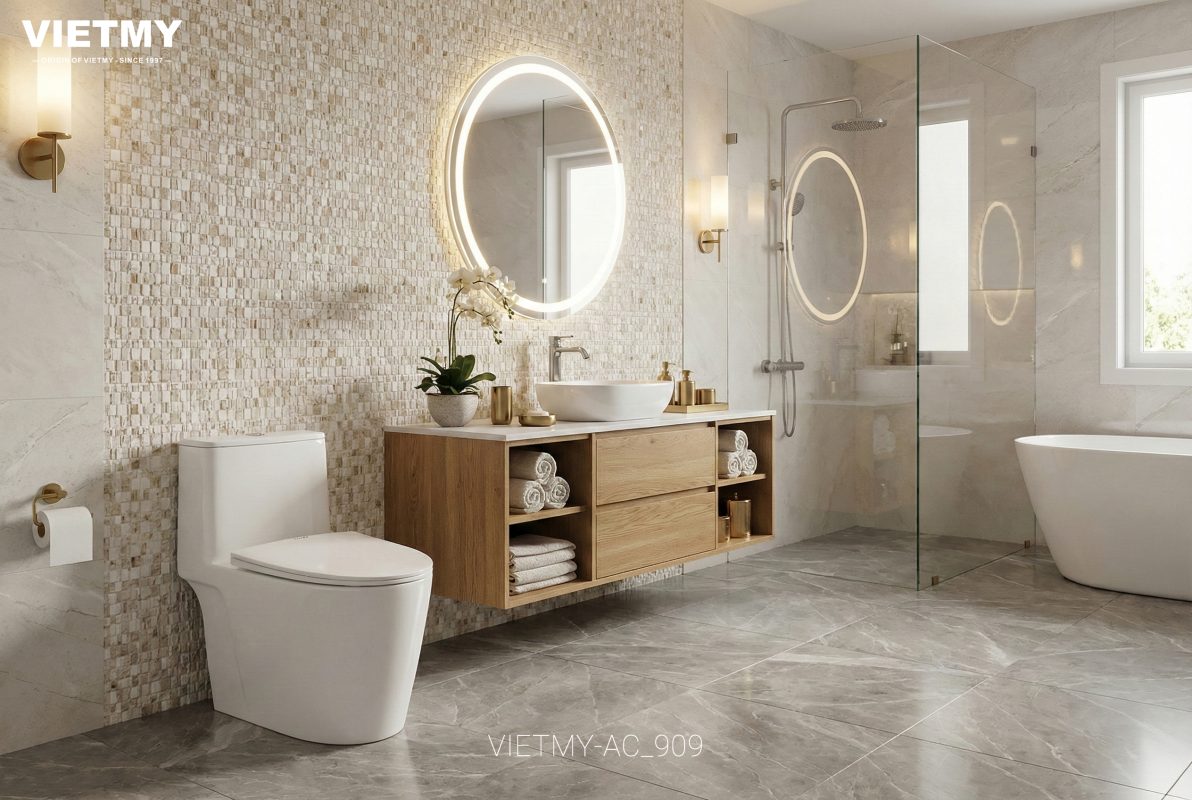 Với định hướng nâng tầm trải nghiệm phòng tắm theo hướng hiện đại, tiện nghi và thẩm mỹ tinh tế. Mỗi sản phẩm là sự kết hợp hài hòa giữa vật liệu cao cấp, thiết kế tối giản và kỹ thuật hoàn thiện tỉ mỉ, tạo nên một tổng thể sang trọng, gọn gàng và phù hợp với nhiều phong cách nội thất.