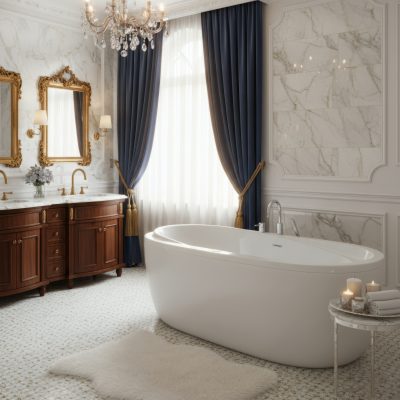 Đá nhân tạo thường xuất hiện trong các thiết kế phòng tắm cao cấp, mang tính trưng bày và kiến trúc mạnh. Bồn tắm làm từ đá nhân tạo gây ấn tượng nhờ vẻ ngoài sang trọng, liền mạch và cảm giác “nguyên khối”.